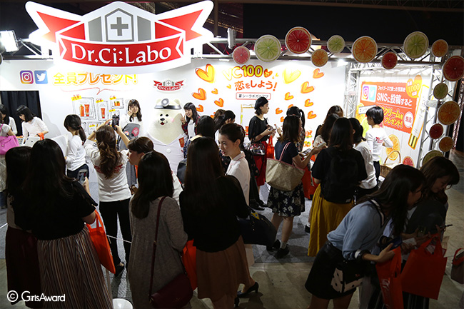 GirlsAwardのブースでおなじみ、大行列のDr.Ci:Laboが今回も全員に当たる女子力アップコスメのビューティーくじを行いました♡皮膚の専門家が作った様々な商品が当たるとあって、終始行列ができ大人気なブースでした!