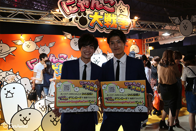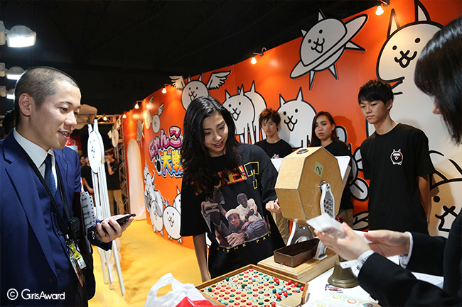 人気ゲームアプリのにゃんこ大戦争のブースにモデルの加藤ナナさん・ダコタローズさん・北沢舞悠さんが登場しました!!