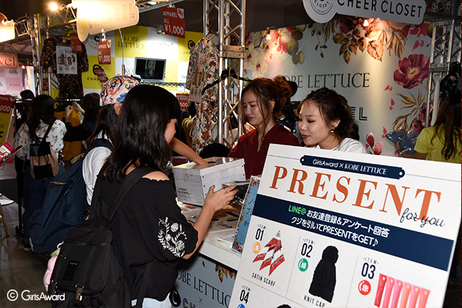 大人気アパレルブランドのKOBE LETTUCEがCCHANNELとのコラボブースを出展!GirlsAward限定価格でお買い物や、アンケートに答えて豪華ノベルティがもらえちゃいました♡ お買い物してくれた方の中から抽選で、飯豊まりえさんとツーショットが撮れちゃうイベントも行い、賑わいました♡